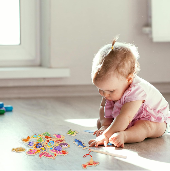 Make learning fun with this 33-Piece Magnetic Fishing Game, designed to help toddlers and young children develop hand-eye coordination, fine motor skills, colour recognition, and early counting skills. Each wooden sea animal features a smooth finish and child-safe paint, making it a safe and engaging toy for everyday play.