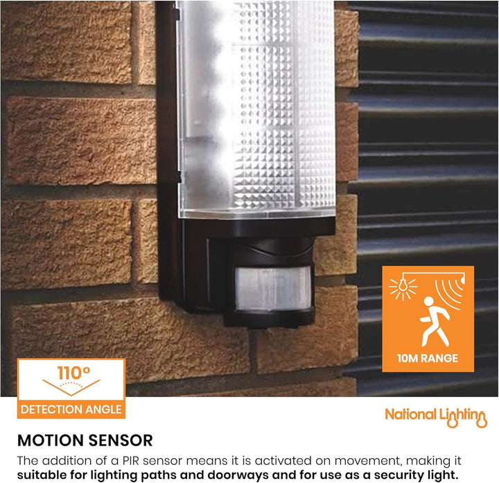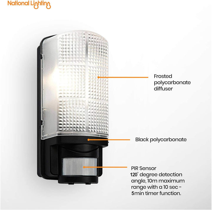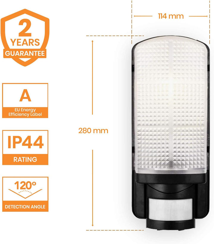 Enhance your home security and outdoor ambiance with the Motion Outdoor Wall Light, a mains-powered PIR light fitting designed for durability and efficiency. Featuring an IP44 waterproof rating and impact-resistant polycarbonate body, this outdoor wall light is perfect for porches, garages, pathways, and garden walls.