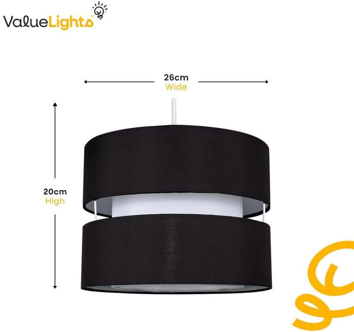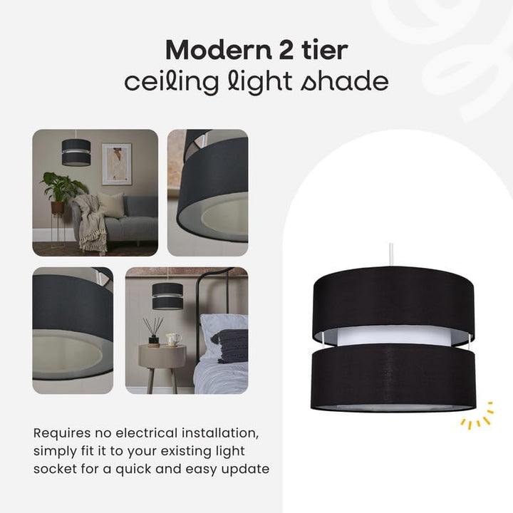 Modern 2-Tier Ceiling Pendant Light Shade – Grey Polycotton Easy Fit Ceiling Lamp Shade for Living Room, Bedroom, or Hallway – 200mm Height x 260mm Diameter