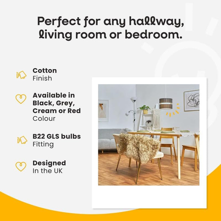 Upgrade your home lighting effortlessly with this Modern 2-Tier Grey Ceiling Pendant Light Shade — a sleek, contemporary addition to any space. Designed with a stylish polycotton grey finish, this elegant lampshade blends seamlessly with modern, minimalist, or Scandinavian interiors.