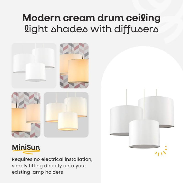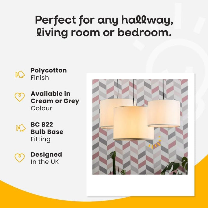 Enhance your home décor with this set of 3 Modern Grey Drum Ceiling Light Shades with Diffusers, designed to bring a stylish and contemporary touch to any room. Crafted with premium materials and a sleek grey polycotton finish, these ceiling light shades blend modern elegance with everyday practicality.