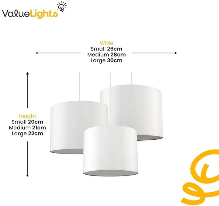3 × Modern Grey Drum Ceiling Light Shades (Small, Medium, Large)