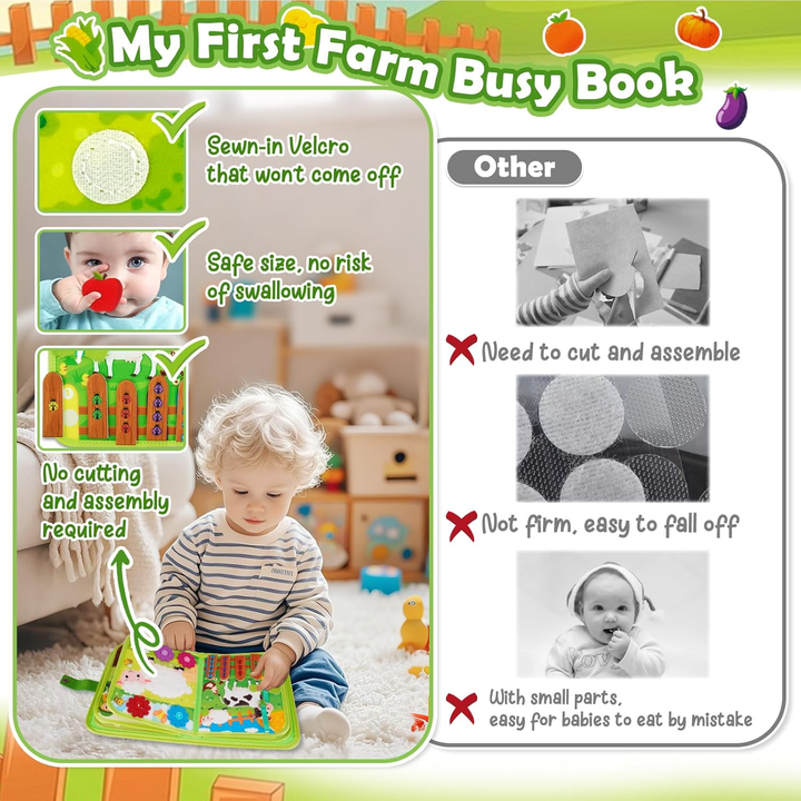 Lightweight and portable, this busy board is ideal for travel, car rides, flights or quiet time at home. The soft, child-safe materials make it safe for toddlers, while the colourful animal farm theme sparks imagination and curiosity. It promotes fine motor skills, sensory exploration, problem-solving and early cognitive development.