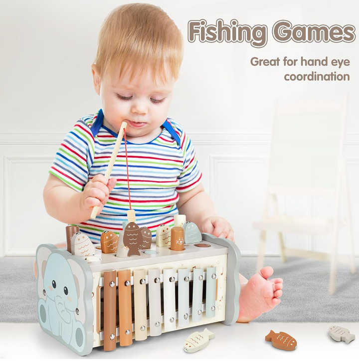 Montessori Wooden Hammering Xylophone Toy with Fishing Game for Ages 1 to 3