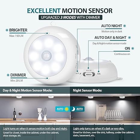 Wireless Stick-On Design: Strong adhesive backing allows quick installation on walls, cabinets, closets, and other surfaces.
