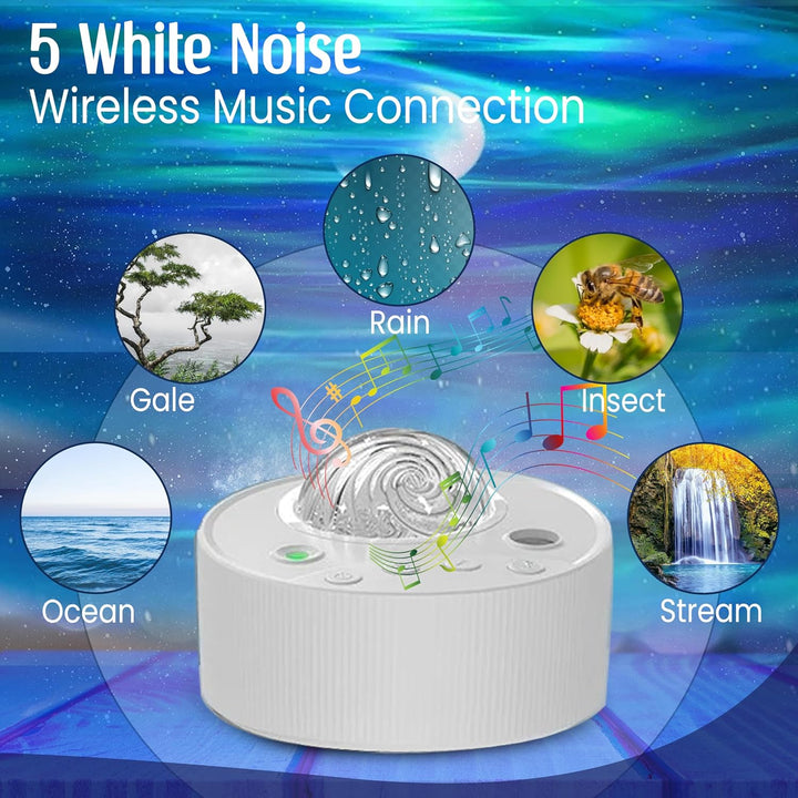 Northern Lights Star Projector with White Noise, Bluetooth Speaker & Timer