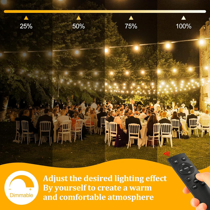 Equipped with a convenient remote control, you can easily switch the lights on or off, adjust brightness across four levels, or set timers to automate your lighting. Whether you're hosting a lively outdoor party or enjoying a calm evening on the terrace, these lights let you create the perfect ambiance effortlessly.