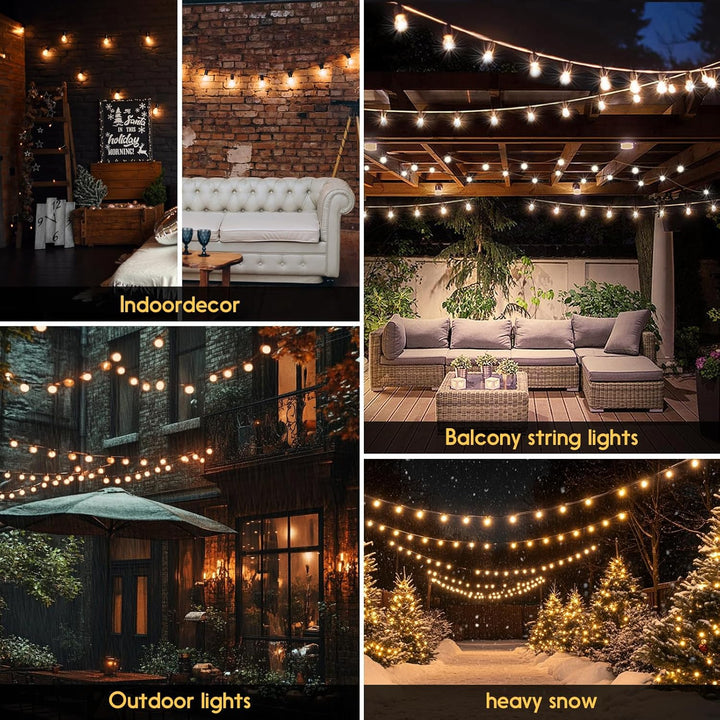Transform your outdoor space with the Outdoor Garden String Lights LED G40 100Ft (30M) — a perfect combination of durability, style, and energy efficiency. Designed for balconies, patios, gazebos, pergolas, and festive events, these lights create a warm, inviting glow while ensuring long-lasting performance.