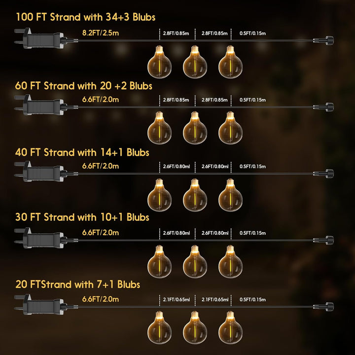 100Ft Outdoor G40 LED String Lights, Dimmable Waterproof Festoon Lighting