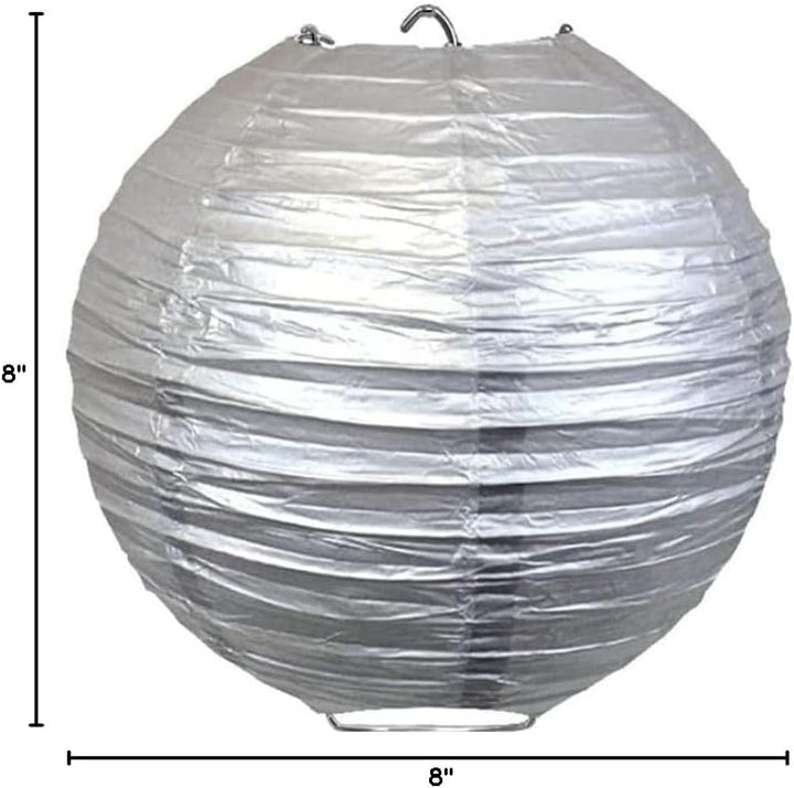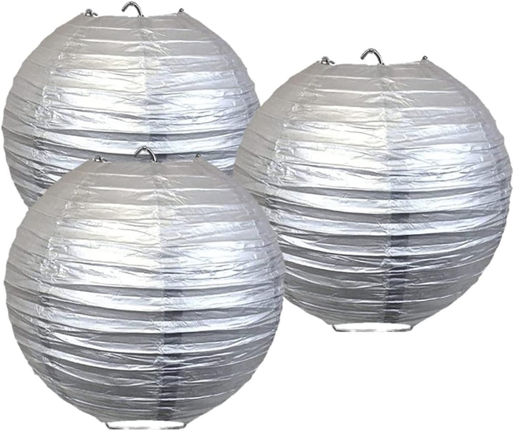 Pack of 3 Silver Paper Lanterns, 8" (20cm) Lampshades for Party, Birthday, Wedding Decor