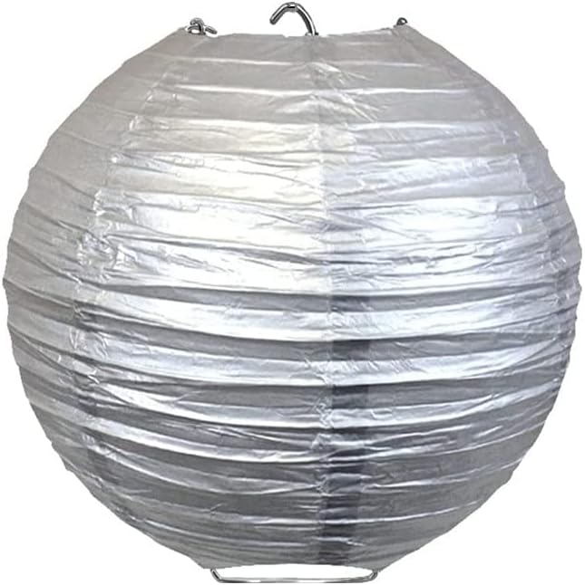 Add an elegant and festive touch to any celebration with this Pack of 3 Silver Paper Lantern Lampshades. Perfect for parties, birthdays, baby showers, weddings, and other special occasions, these lanterns create a soft, warm glow that enhances the ambiance of your event. Each lantern measures 8 inches (20 cm) in diameter and is crafted from high-quality, durable paper, making them lightweight yet sturdy enough for repeated use. Easy to assemble, they can be hung from ceilings, trees, or poles using the included hooks or string. Their classic Silver color makes them versatile and suitable for any theme or décor style, while the simple design allows for pairing with fairy lights or candles for a magical effect. These paper lanterns are perfect for both indoor and outdoor celebrations, adding charm and sophistication to weddings, birthdays, showers, and parties.