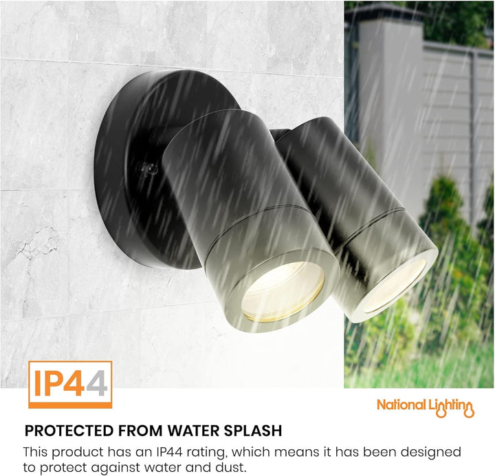 Illuminate your garden, porch, or driveway with the Palin IP44 Rated Outdoor Twin Spotlights. Designed for durability and efficiency, these mains-powered GU10 spotlights combine modern aesthetics with robust construction.