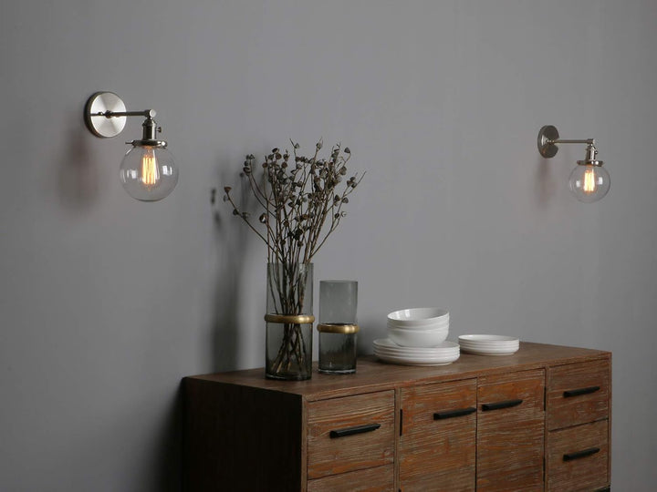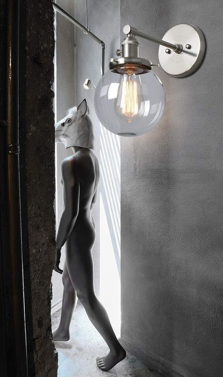 Phansthy Retro Industrial Wall Light with Glass Globe Shade
