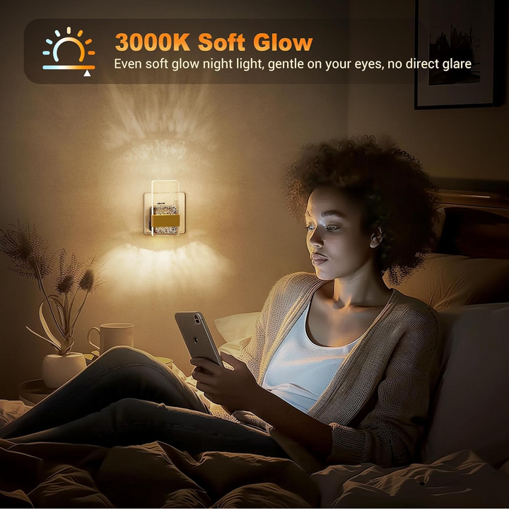 Equipped with a dusk-to-dawn sensor, the night light automatically switches on when the room darkens and turns off when daylight returns. This hands-free operation ensures energy efficiency and convenience, making it perfect for households with children, seniors, or anyone who needs safe nighttime lighting.