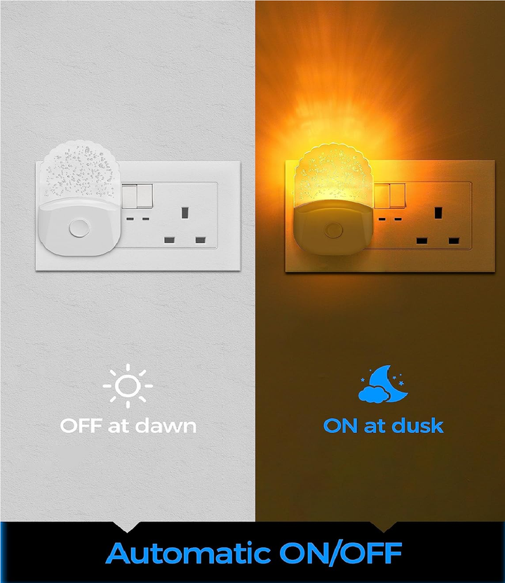 This Plug In Night Light with Dusk to Dawn Sensor provides soft, reliable lighting for hallways, bedrooms, nurseries, garages and other indoor spaces. Designed with a built-in light sensor, it automatically turns on at dusk and turns off at dawn, ensuring effortless operation without the need to manually switch it on or off.