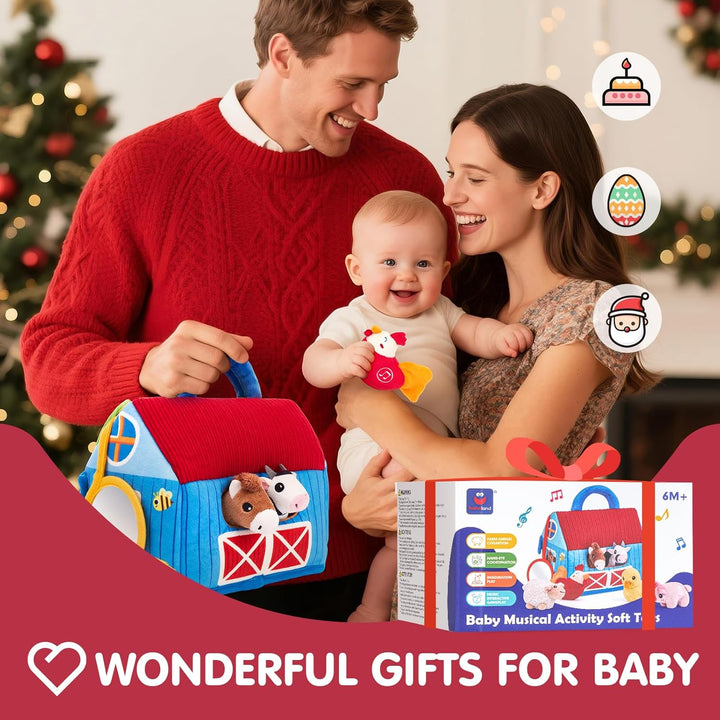 Plush Farm Animal Sound Toys for Babies 6-12 Months, Interactive Sensory Barn Set