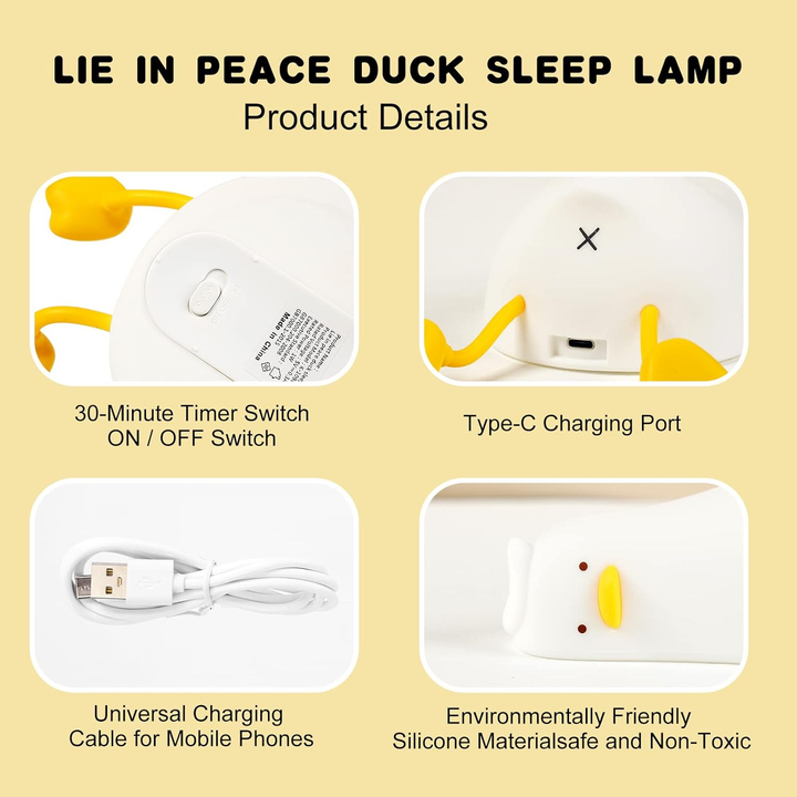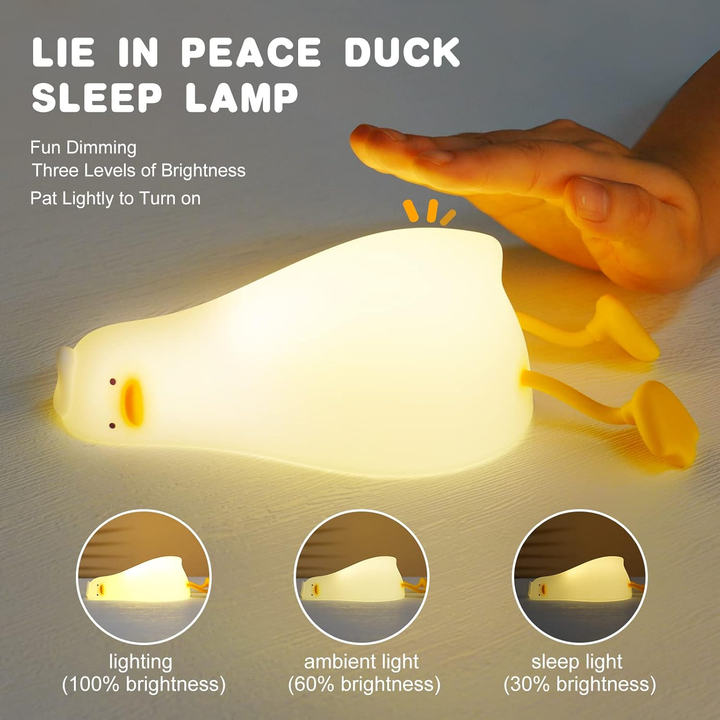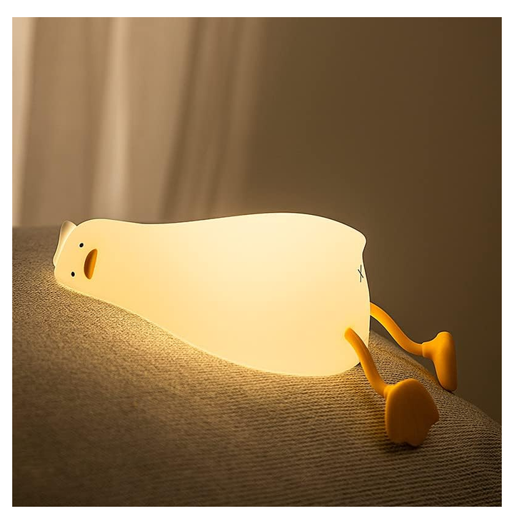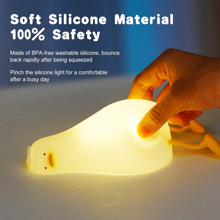 The Lying Flat Duck Kids Night Light is a soft, soothing and portable bedtime companion designed to help children feel safe and relaxed during sleep. Made from high-quality silicone, this adorable duck lamp features a gentle, warm LED glow that creates a comforting atmosphere in any nursery or bedroom. Its squishy, soft-touch body is safe for small hands, making it perfect for toddlers, babies and young children.
