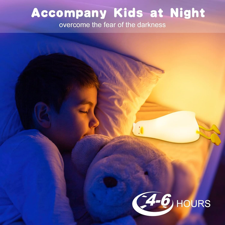 Portable Silicone Duck Night Light for Kids, USB Rechargeable Baby Sleep Lamp