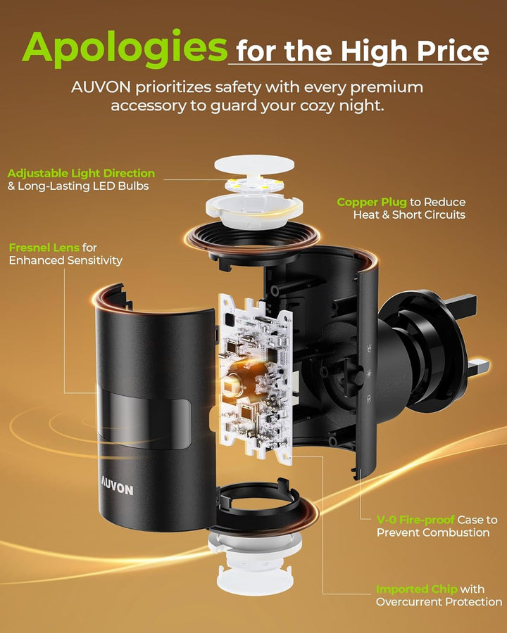Dual Smart Modes: AUTO (motion sensor) & NIGHT (dusk-to-dawn)