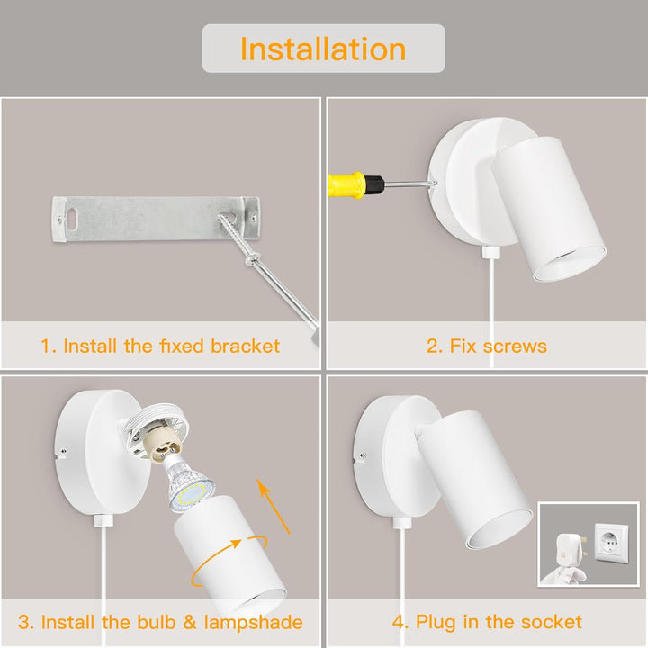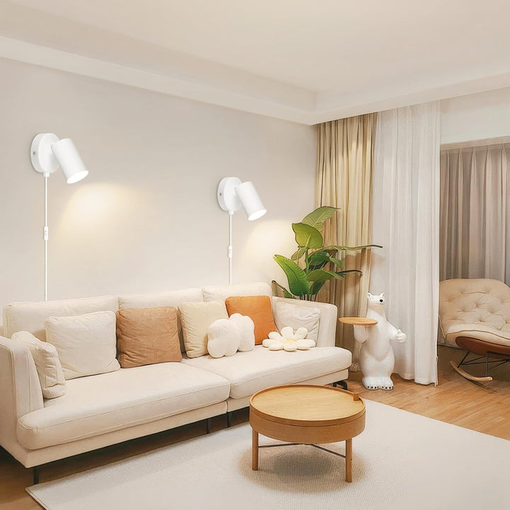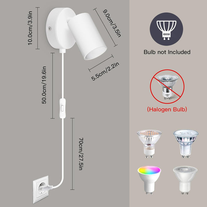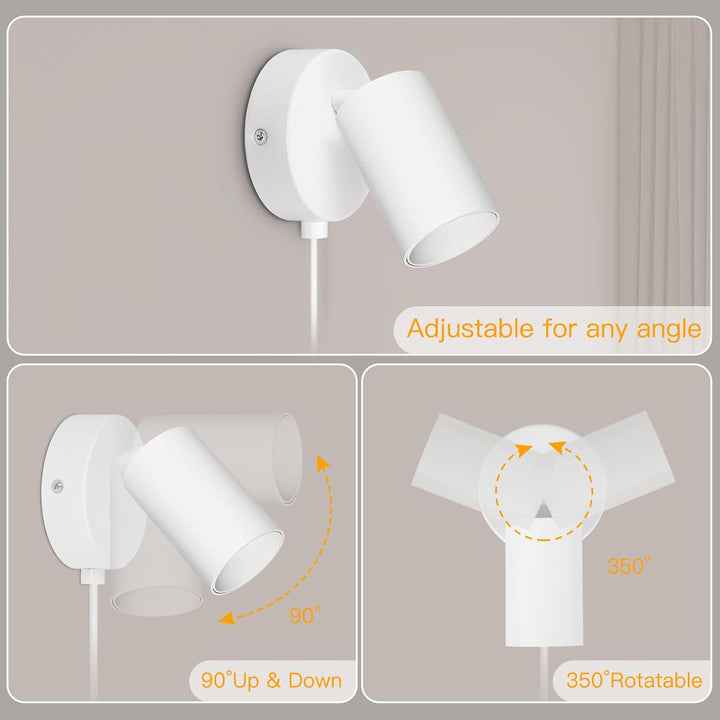 2 Pack White Plug-in Wall Lights, Adjustable GU10 Modern Wall Sconces