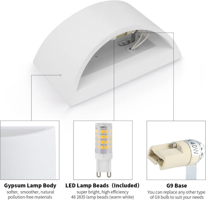 2 × Plaster Wall Lights (G9 LED Bulb Included)