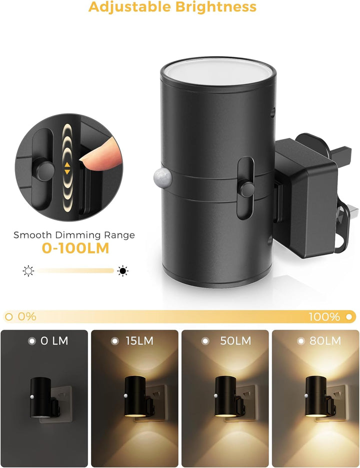 LOHAS Plug-in Motion Sensor Night Light, Dimmable 0–100LM 3000K Warm White