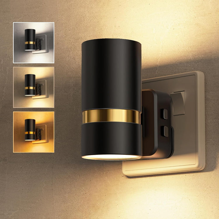 Enhance your home lighting with the LOHAS Modern Plug-in Night Light, designed to combine style, comfort, and energy efficiency. With its sleek black and gold finish, this night light complements any interior décor, from modern to classic.