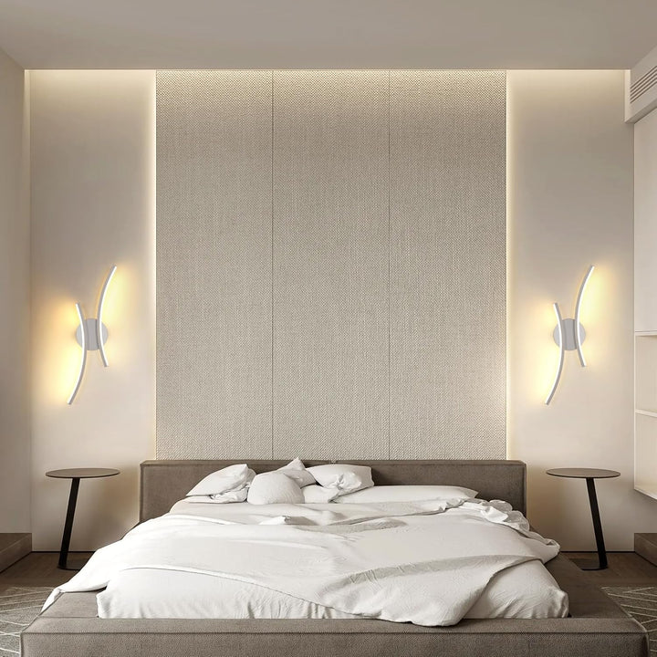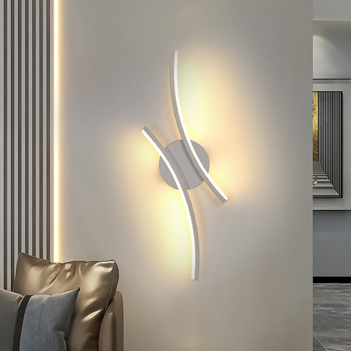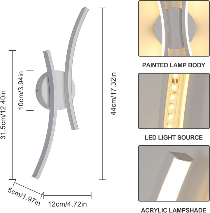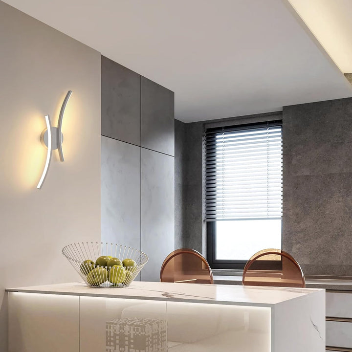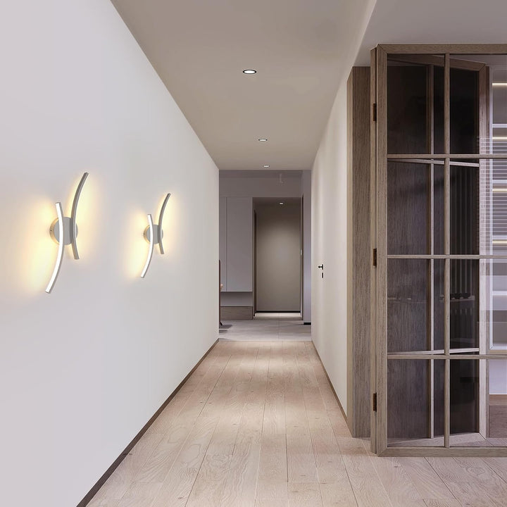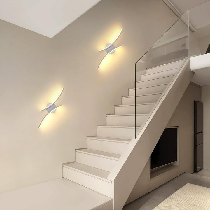 Elevate your interior with the Modern LED Wall Light, designed to provide elegant and functional illumination. Featuring two staggered curved lamps, this wall sconce creates a soft, 3000K warm white glow, delivering a cozy and inviting ambiance for any space.