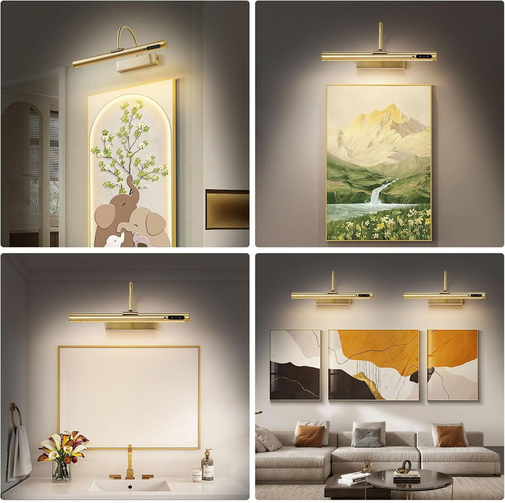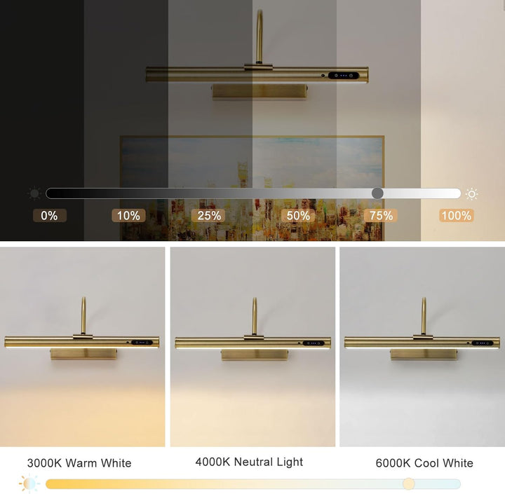 Antique Brass Rechargeable Picture Light, Dimmable LED Wall Lamp with Remote