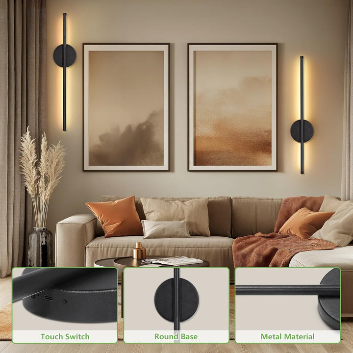 Bring flexible, elegant lighting anywhere with these Rechargeable Battery Operated Wall Lights (2 Pack) — a perfect solution for bedrooms, living rooms, hallways, and reading nooks where wiring isn’t possible. Featuring 3 light color modes, stepless dimming, and a remote control with timer, these wireless wall sconces offer both style and convenience.