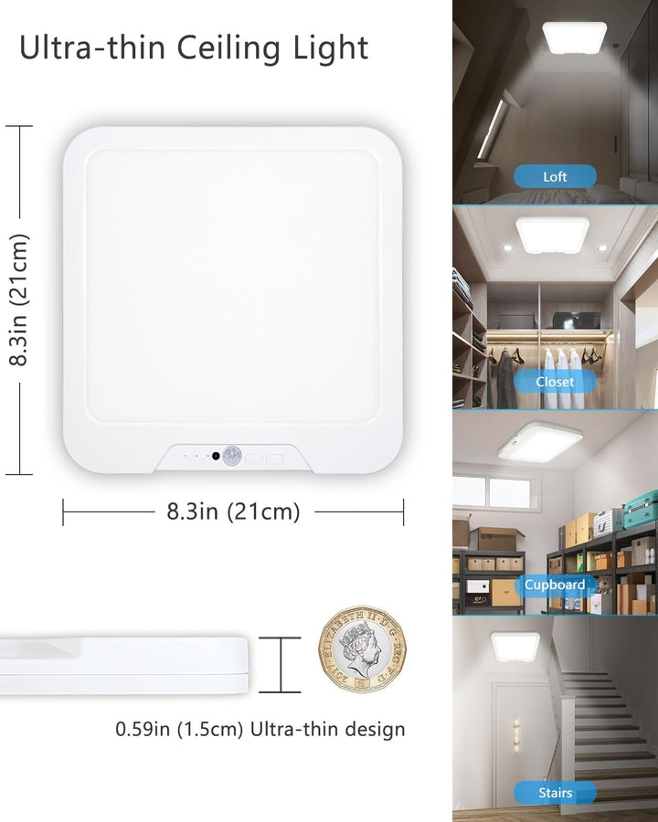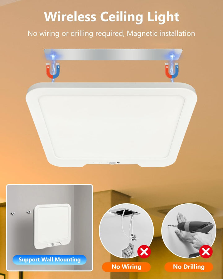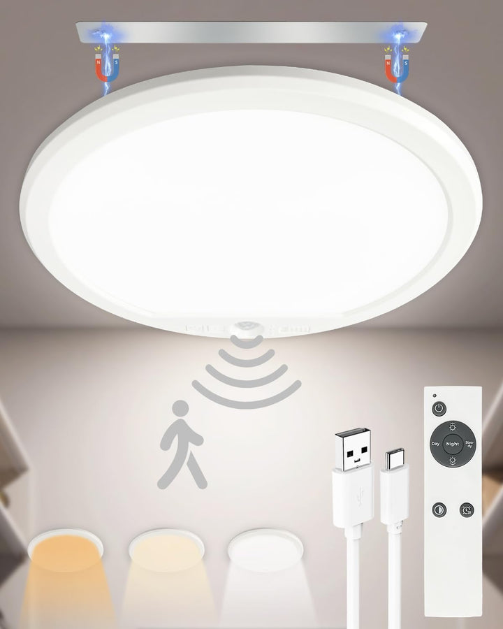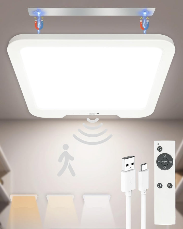 Rechargeable LED Ceiling Light with Motion Sensor | 7500mAh Battery, Remote, Dimmable