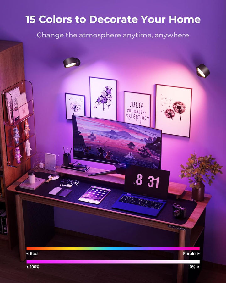 Transform your living space with the LED Indoor Wall Lamp (2 Pack) — a perfect blend of modern design, intelligent control, and vibrant color options. Featuring 18 RGB colors, 3 white color temperatures, and 4 brightness levels, this wall lamp offers fully customizable lighting to suit any mood or setting.