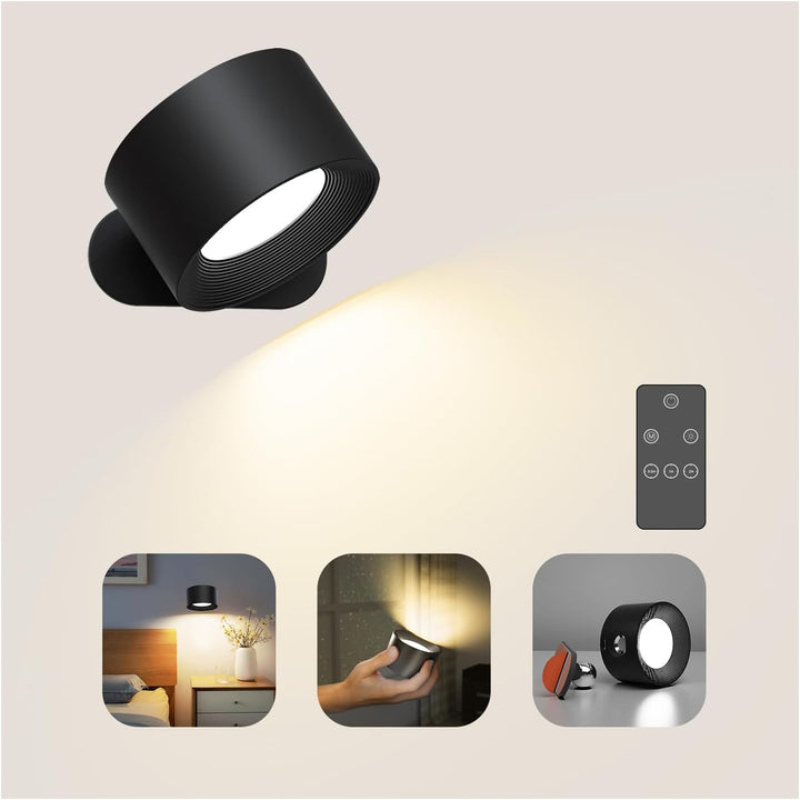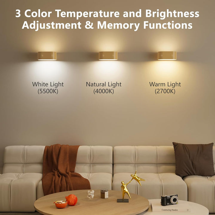This battery-operated wall sconce combines functionality and style, offering independent main and night light control, a 1-hour auto-off timer, and touch-sensitive brightness and color temperature settings. The 360° magnetic rotation design allows flexible lighting angles, while the removable light head doubles as a handheld flashlight for extra convenience.