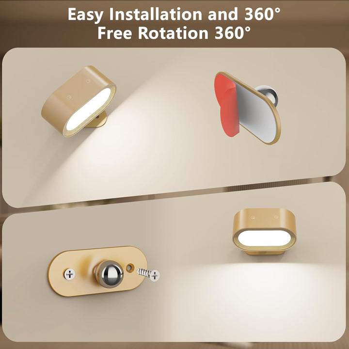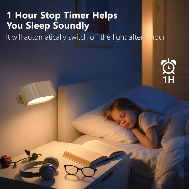 Rechargeable LED Wall Light with Timer, 360° Adjustable, Touch Control, Dual Light Source, Wireless Wall Sconce for Bedroom, Reading & Hallway
