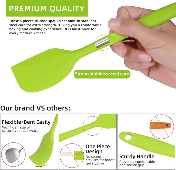 Silicone Spatula Set 5 PCS, Heat-Resistant Non-Stick Food Grade Baking Utensils