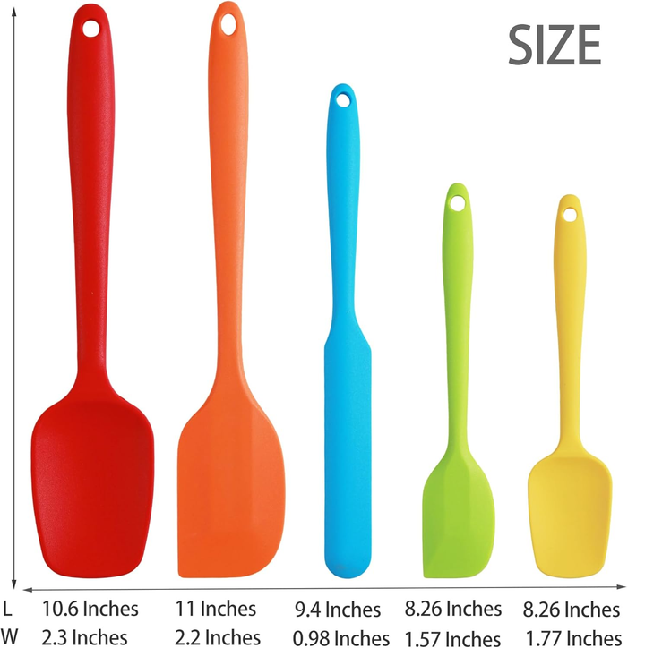 Set Includes: 5 silicone spatulas (various sizes and shapes)