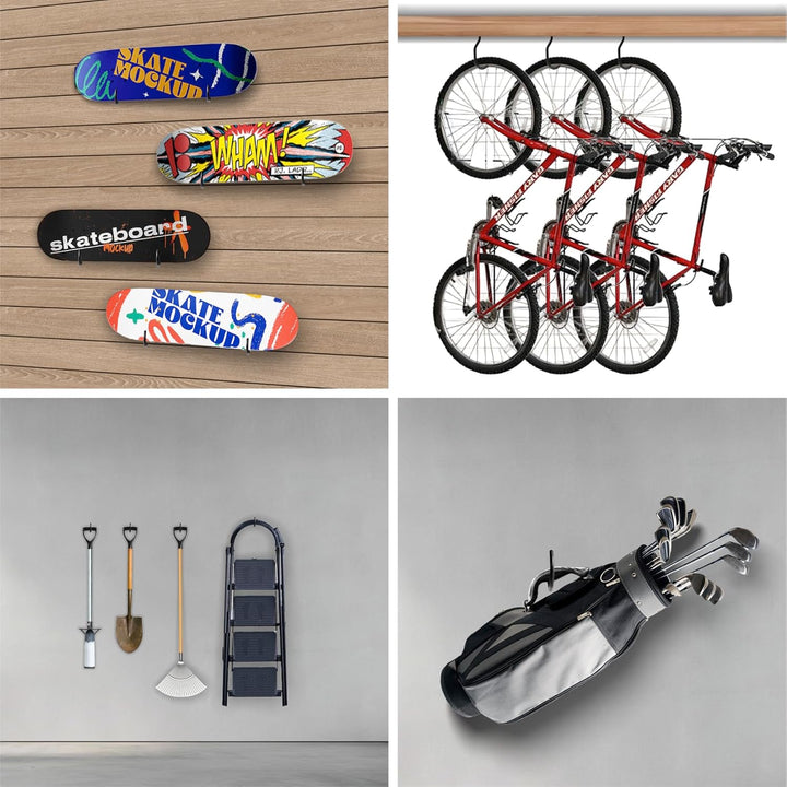 Versatile Storage: Perfect for ceilings and walls, these hooks are ideal for organizing mountain bikes, road bikes, tires, garden hoses, tools, scooters, strollers, and more.