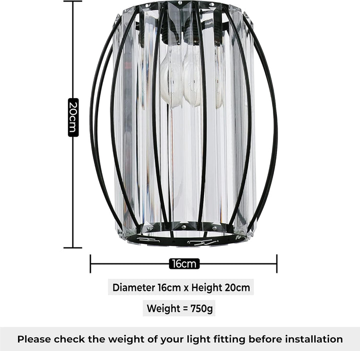 1 × Small Black Crystal Cylinder Light Shade (16×20cm)