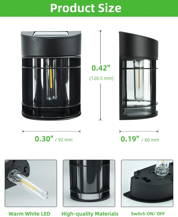 Add a charming vintage touch to your outdoor spaces with the Solar Fence Lights Outdoor Garden 6 Pack. These retro-style solar wall lights combine elegant design with modern LED efficiency, creating a cozy 3000K warm white glow perfect for patios, fences, gates, decks, and yards.