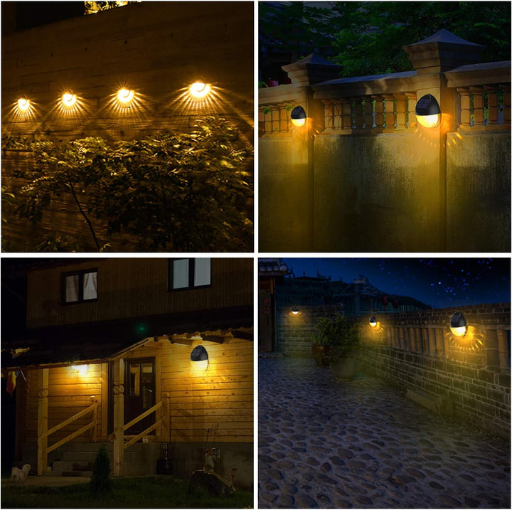 KMASHI Solar Fence Lights Outdoor, 4 Pack Warm White Waterproof Garden Lights, Solar Powered Decorative Wall Lighting for Fence, Patio, Yard, Pathway