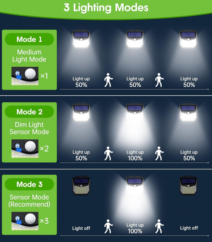 ✅ Smart Motion Sensor: Three adaptive modes for energy savings and convenience.