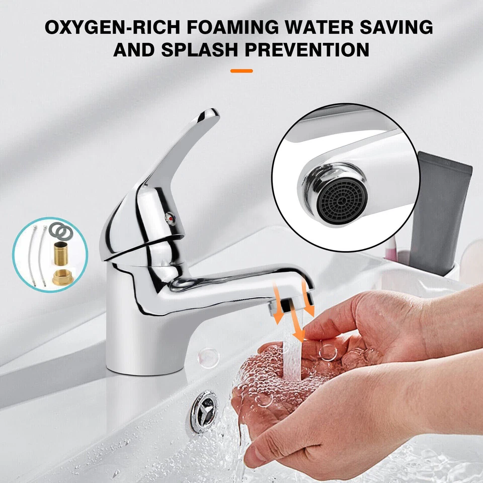 Chrome Cloakroom Basin Mixer Tap – Modern Sink Mono Bathroom Faucet with Fixings & Waste