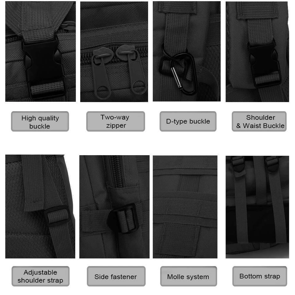 The 30L Military Tactical Backpack is a durable army rucksack designed for camping, hiking, trekking, and outdoor adventures. Made from high-quality, wear-resistant materials, this heavy-duty backpack offers ample storage space with multiple compartments for organizing gear, tools, and essentials. Featuring a zippered closure, adjustable straps, and a hidden compartment, it ensures secure and comfortable carrying for long journeys. Whether you're on a hiking trip, military mission, or survival expedition, this rugged tactical rucksack provides reliable performance, durability, and versatility for all your outdoor needs.