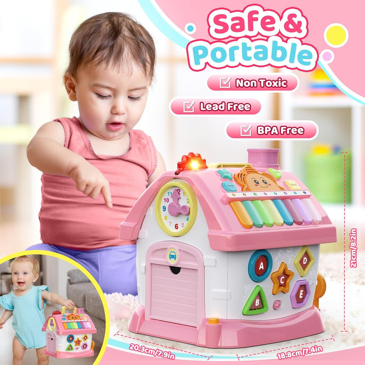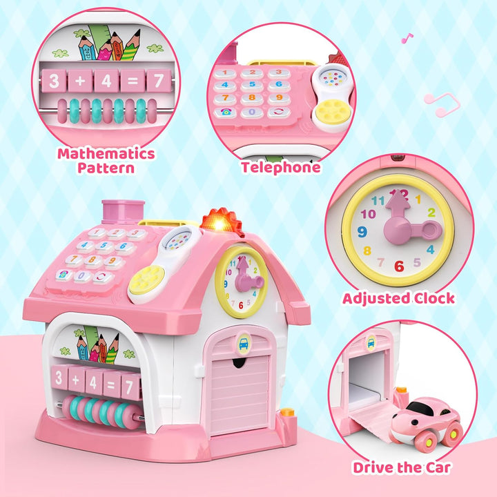 Toddler Montessori Activity House Toy 6-in-1 for 1–2 Year Old Girls with Music & Clock