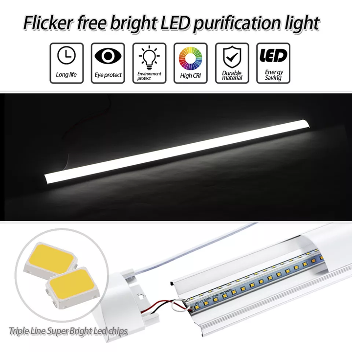 Upgrade your lighting with high-quality LED Strip Batten Tube Lights, designed for offices, shops, garages, and ceilings in the UK. These modern purification lights provide efficient and uniform illumination with SMD 2835 LED chips, ensuring low energy consumption and long-lasting performance. The robust aluminum housing enhances durability, while the milky polycarbonate (PC) cover ensures even light distribution, reducing glare and improving visibility.