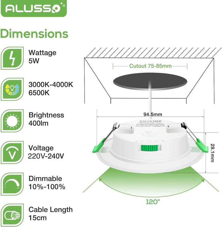 Perfect for bathrooms, kitchens, living rooms, and hallways, each downlight features an IP44 waterproof rating, making it suitable for damp or humid environments like ceilings under eaves or covered balconies. The sleek, ultra-thin design ensures a seamless, elegant look that blends effortlessly with any décor.