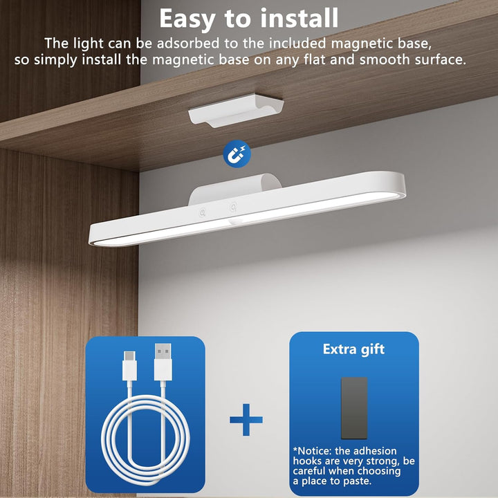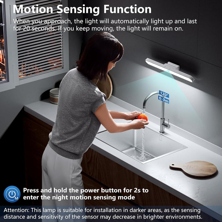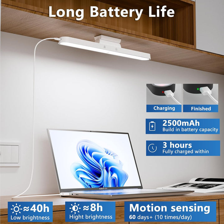 Under Cabinet LED Kitchen Light, Motion Sensor, Rechargeable 2500mAh, Dimmable 3 Colour Modes (3000K/4500K/6000K) USB-C Light Bar for Cupboard, Wardrobe, Mirror