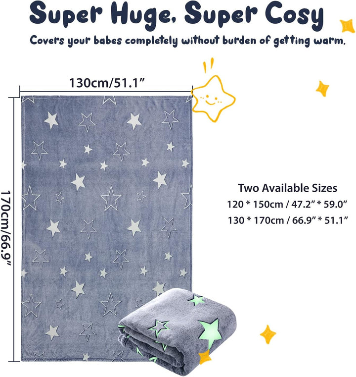 This Winthome blanket is made from soft flannel fleece, perfect for keeping kids cozy all year round. The blanket features a fun star pattern that glows in the dark, making it a great addition to any bedroom or for a camp out in the living room.