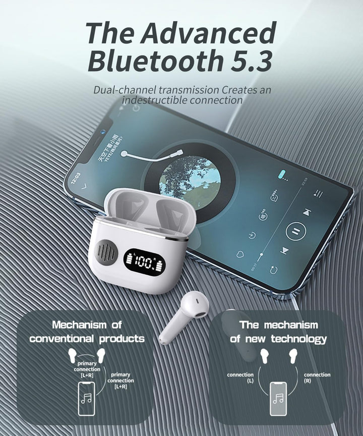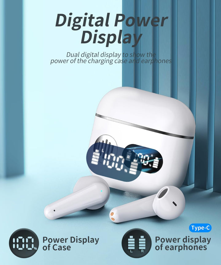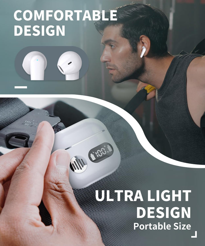 48H Playtime & LED Display: 6 hours per charge + 7 recharges via case with dual power indicators.