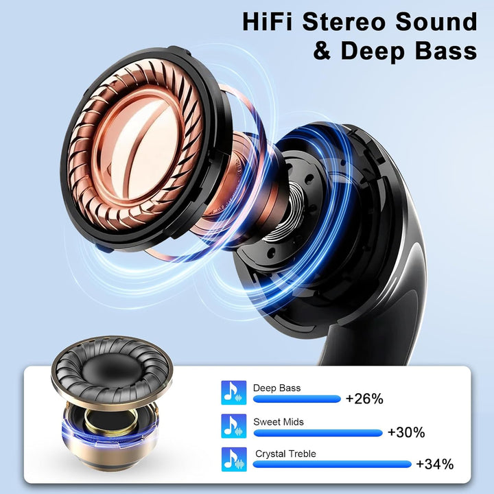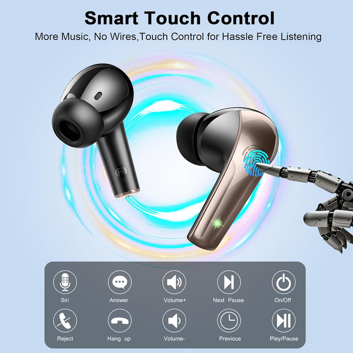 Enjoy premium sound and all-day convenience with the Wireless Earbuds Bluetooth 5.3 Mini Headphones in stylish Black Gold. These compact earbuds deliver crystal-clear audio with noise-cancelling microphones that reduce background noise for seamless calls, meetings, or online classes. Featuring Bluetooth 5.3, they provide fast, stable, and low-latency connectivity with a wide range of devices including iOS, Android, tablets, and laptops. Designed for comfort and portability, the mini earbuds fit securely in your ears and are suitable for workouts, commuting, travel, or daily use. The waterproof design ensures protection against sweat, rain, and splashes, making them ideal for active lifestyles. With a lightweight, ergonomic build and a convenient charging case, these earbuds offer long-lasting battery life, effortless pairing, and touch controls to manage music, volume, and calls. The Black Gold finish adds a premium aesthetic, combining style, performance, and durability in one compact package.